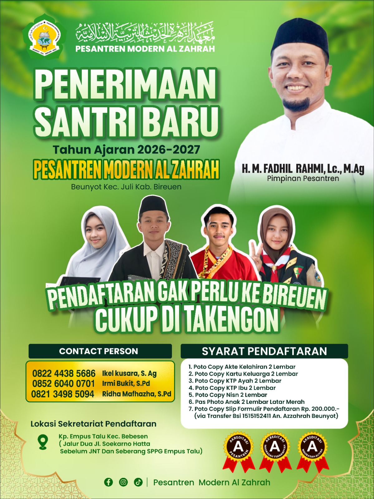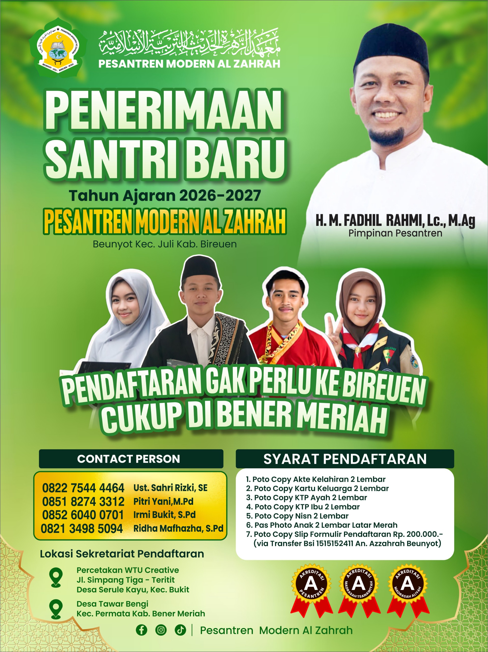 Pesantren Al Zahrah Buka Posko Pendaftaran Khusus di Aceh Tengah dan Bener Meriah